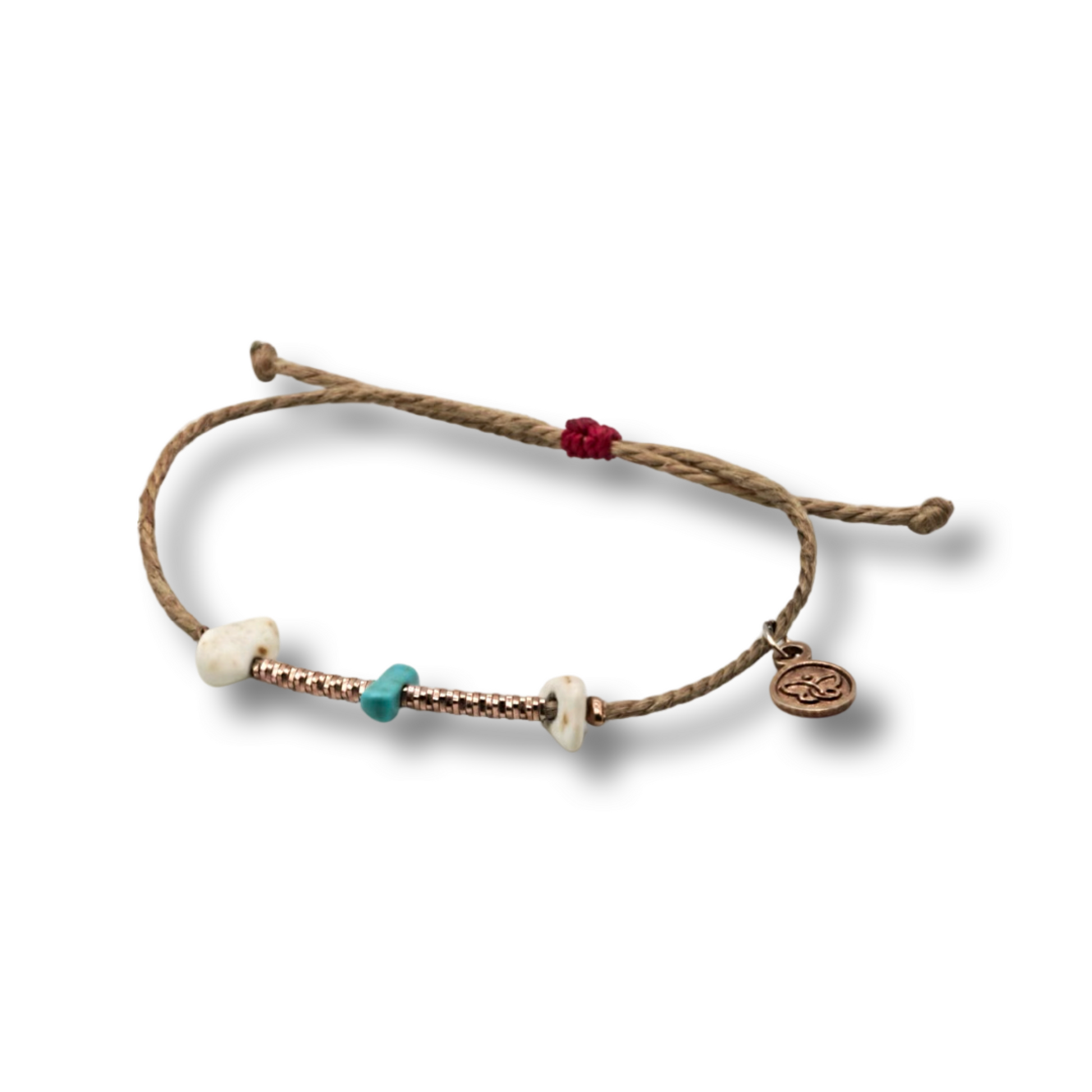 Hemp strap mixed with jade and howlite and 18k gold plated beads.